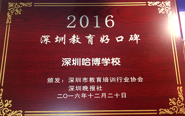 哈博学校荣获深圳教育“好口碑”机构