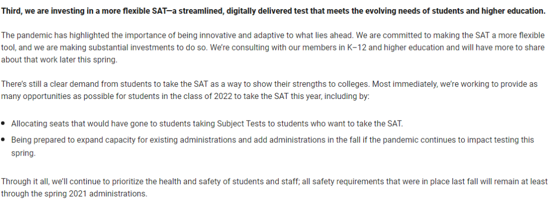 昨晚,就有美国媒体放出消息,预示College Board(CB)美国大学考试中心或将取消SAT II (SAT Subject Test)以及SAT的Essay部分。果然,就在刚刚正式“官宣”,CB除了今年的最后两场考试,也就是2021年5月8日和6月5日,之后将不会再提供。同时,SAT在线考试或将呼之欲出。